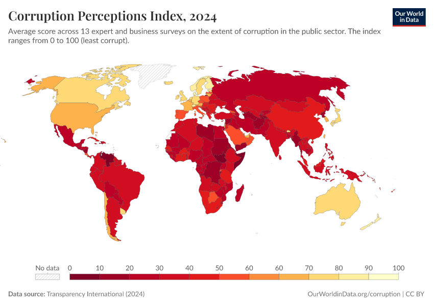 Bastian Herre, Veronika Samborska, and Esteban Ortiz-Ospina (2016) - “Corruption” Published online at OurWorldinData.org. Retrieved from: 'https://data-measles-pipeline-fix.owid.pages.dev/corruption' [Online Resource]BibTeX citation