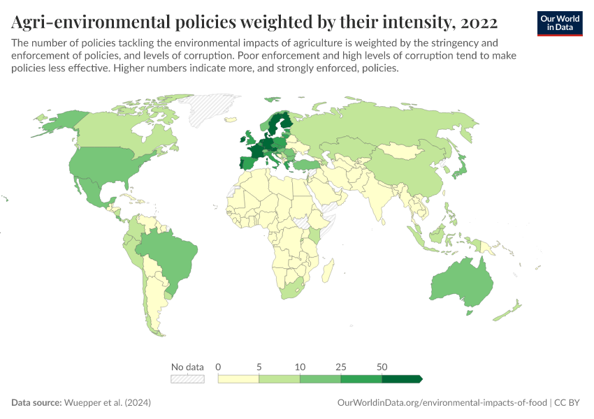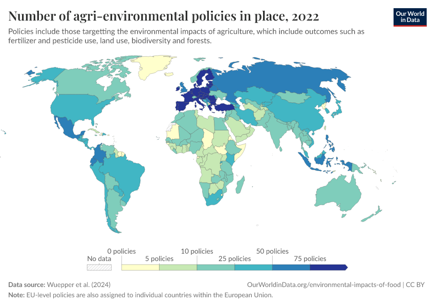 Hannah Ritchie (2024) - “How effective are policies in reducing the environmental impacts of agriculture?” Published online at OurWorldinData.org. Retrieved from: 'https://data-measles-pipeline-fix.owid.pages.dev:8789/20260226-122020/effective-policies-reducing-environmental-impacts-agriculture.html' [Online Resource] (archived on February 26, 2026).BibTeX citation