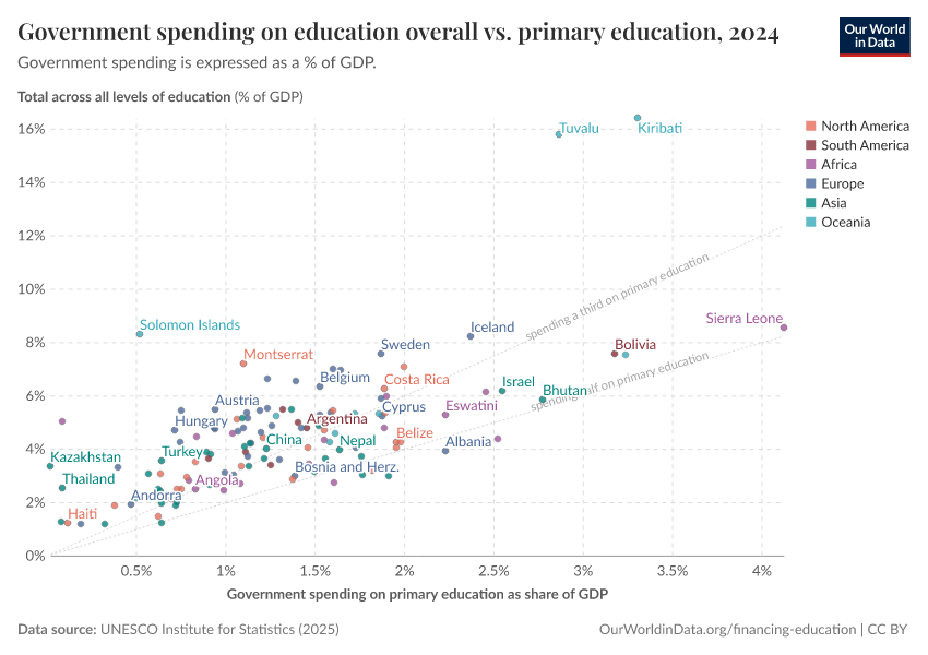 Max Roser and Esteban Ortiz-Ospina (2016) - “Education Spending” Published online at OurWorldinData.org. Retrieved from: 'https://data-measles-pipeline-fix.owid.pages.dev/financing-education' [Online Resource]BibTeX citation