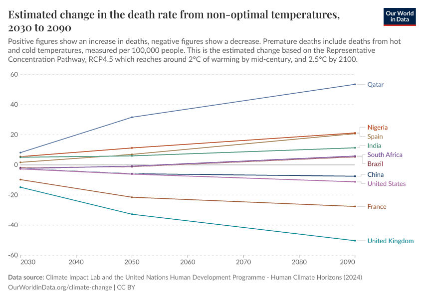 “Data Page: Estimated change in the death rate from non-optimal temperatures”. Our World in Data (2026). Data adapted from Climate Impact Lab and the United Nations Human Development Programme. Retrieved from https://data-measles-pipeline-fix.owid.pages.dev:8789/20250909-093708/grapher/change-heat-death-rate.html [online resource] (archived on September 9, 2025).How to cite this data