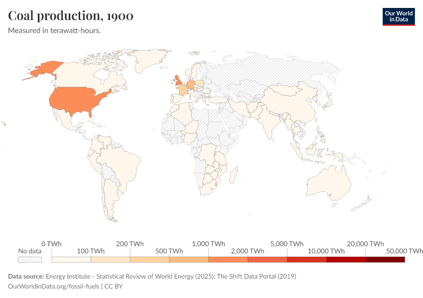 “Data Page: Coal production”, part of the following publication: Hannah Ritchie, Pablo Rosado, and Max Roser (2023) - “Energy”. Data adapted from Energy Institute, The Shift Data Portal. Retrieved from https://data-measles-pipeline-fix.owid.pages.dev:8789/20260119-070102/grapher/coal-production-by-country.html [online resource] (archived on January 19, 2026).