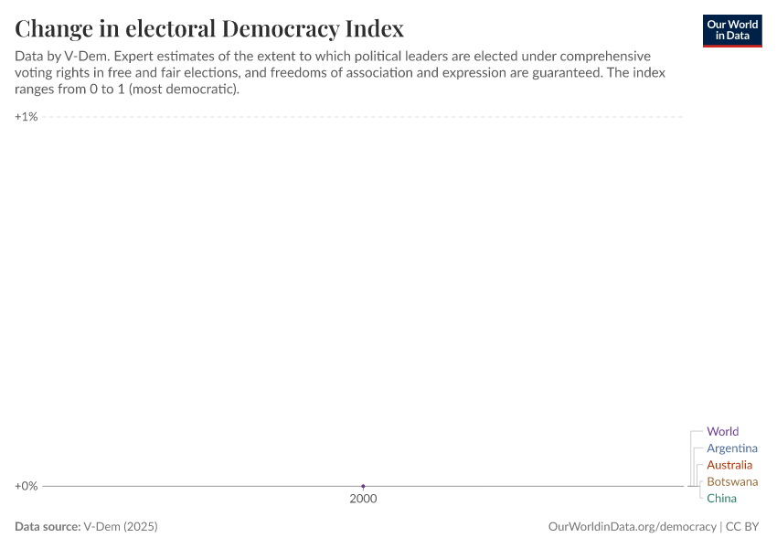 “Data Page: Electoral democracy index”, part of the following publication: Bastian Herre, Lucas Rodés-Guirao, and Esteban Ortiz-Ospina (2013) - “Democracy”. Data adapted from V-Dem. Retrieved from https://data-measles-pipeline-fix.owid.pages.dev:8789/20260119-070102/grapher/electoral-democracy-index.html [online resource] (archived on January 19, 2026).