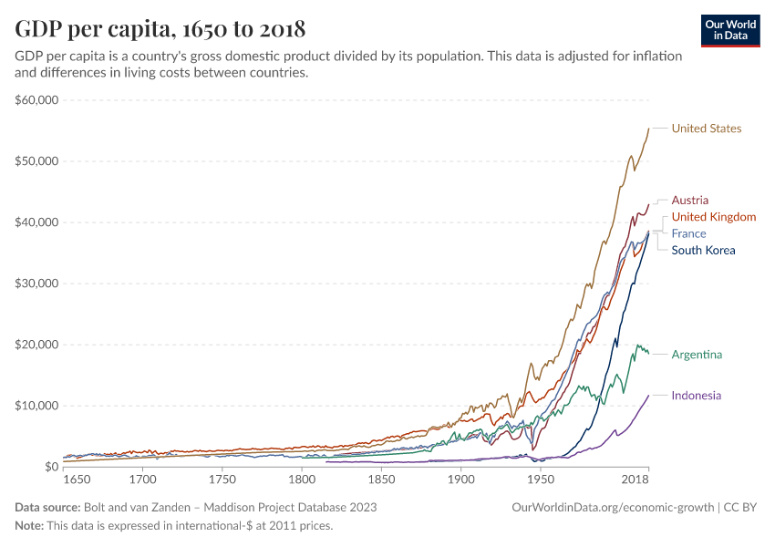 • For more frequently updated estimates since 1990, explore our chart of GDP per capita from the World Bank.