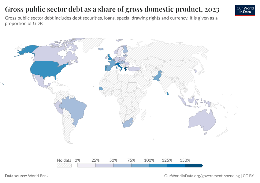 “Data Page: Gross public sector debt as a share of gross domestic product”. Our World in Data (2026). Data adapted from World Bank. Retrieved from https://data-measles-pipeline-fix.owid.pages.dev:8789/20251120-211749/grapher/gross-public-sector-debt-as-a-proportion-of-gdp.html [online resource] (archived on November 20, 2025).How to cite this data