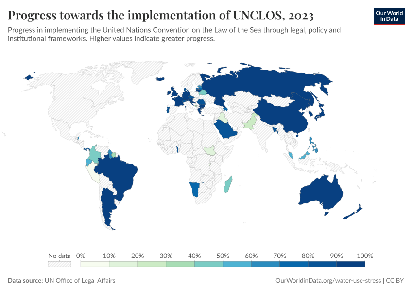 “Data Page: Progress towards the implementation of UNCLOS”. Our World in Data (2026). Data adapted from UN Office of Legal Affairs. Retrieved from https://data-measles-pipeline-fix.owid.pages.dev:8789/20251120-211749/grapher/implementation-of-unclos.html [online resource] (archived on November 20, 2025).How to cite this data