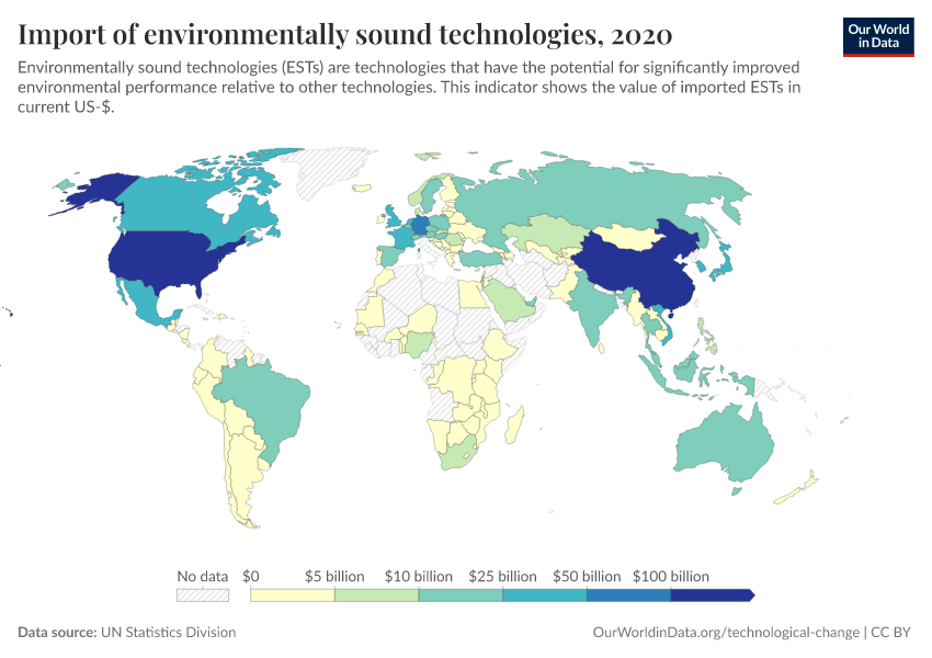 “Data Page: Import of environmentally sound technologies”. Our World in Data (2026). Data adapted from UN Statistics Division. Retrieved from https://data-measles-pipeline-fix.owid.pages.dev:8789/20260130-180113/grapher/import-of-environmentally-sound-technologies.html [online resource] (archived on January 30, 2026).How to cite this data