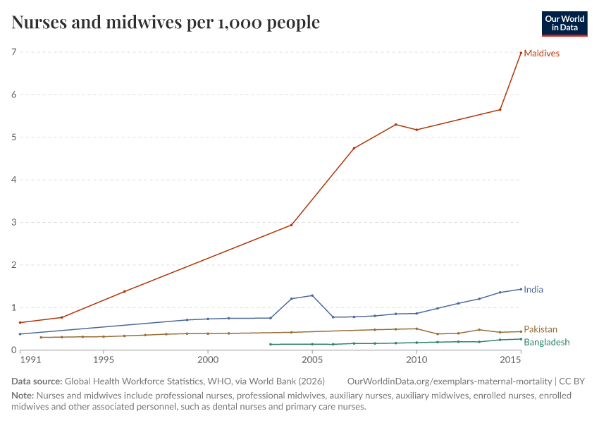 “Data Page: Nurses and midwives per 1,000 people”. Our World in Data (2026). Data adapted from Global Health Workforce Statistics, WHO, via World Bank. Retrieved from https://data-measles-pipeline-fix.owid.pages.dev:8789/20260202-181317/grapher/nurses-and-midwives-per-1000-people.html [online resource] (archived on February 2, 2026).How to cite this data