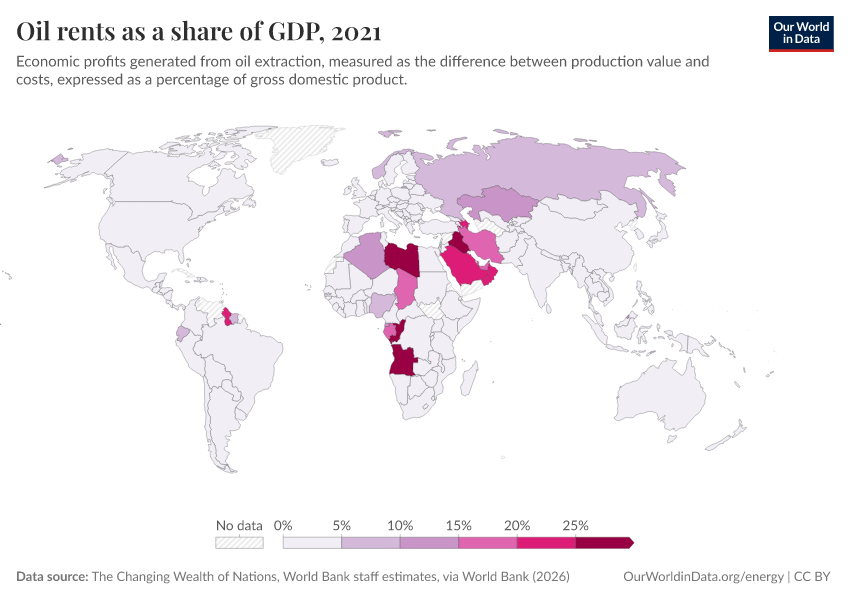 “Data Page: Oil rents as a share of GDP”. Our World in Data (2026). Data adapted from The Changing Wealth of Nations, World Bank staff estimates, via World Bank. Retrieved from https://data-measles-pipeline-fix.owid.pages.dev:8789/20260202-181317/grapher/oil-rents-as-a-share-of-gdp.html [online resource] (archived on February 2, 2026).How to cite this data