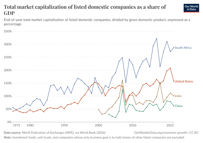 “Data Page: Total market capitalization of listed domestic companies as a share of GDP”. Our World in Data (2026). Data adapted from World Federation of Exchanges (WFE), via World Bank. Retrieved from https://data-measles-pipeline-fix.owid.pages.dev:8789/20260202-181317/grapher/total-market-capitalization-listed-domestic-companies-share-gdp.html [online resource] (archived on February 2, 2026).How to cite this data