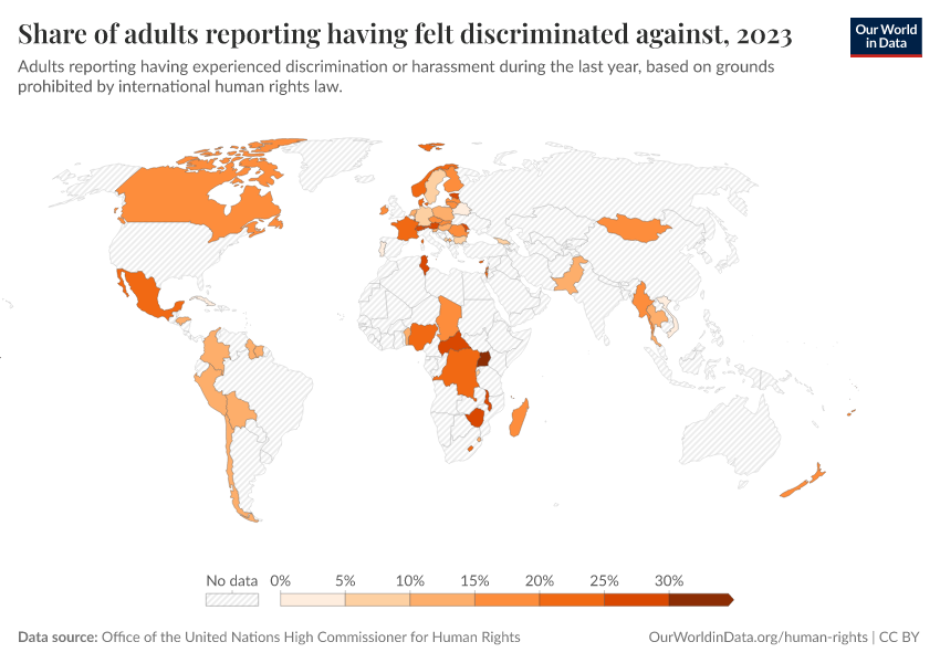 In this context, international human rights law refers to legal instruments such as the Universal Declaration of Human Rights and subsequent international human rights treaties adopted by the United Nations. Data for this indicator is shown in the interactive visualization.