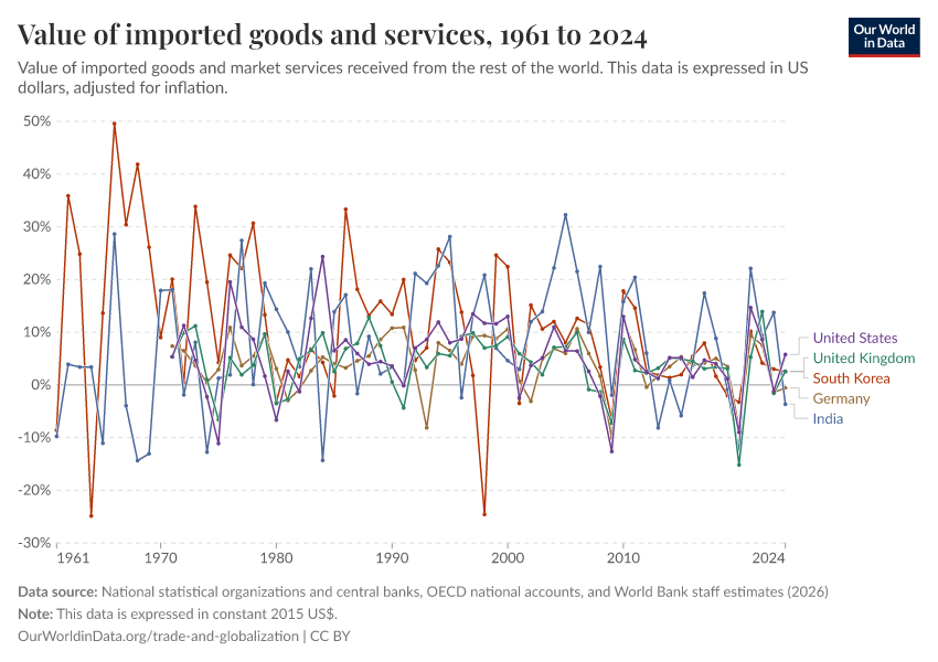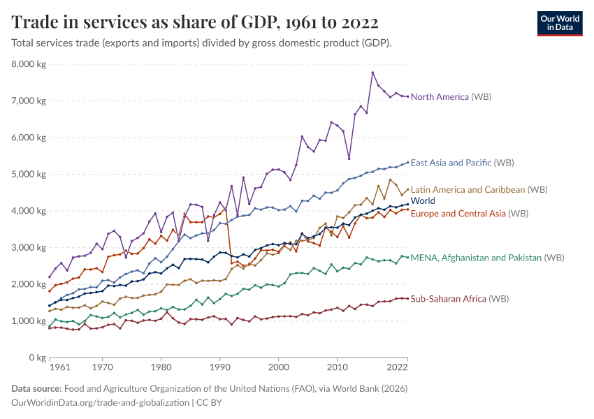 Esteban Ortiz-Ospina, Bertha Rohenkohl, Veronika Samborska, Simon Van Teutem, Diana Beltekian, and Max Roser (2018) - “Trade and Globalization” Published online at OurWorldinData.org. Retrieved from: 'https://data-measles-pipeline-fix.owid.pages.dev/trade-and-globalization' [Online Resource]BibTeX citation